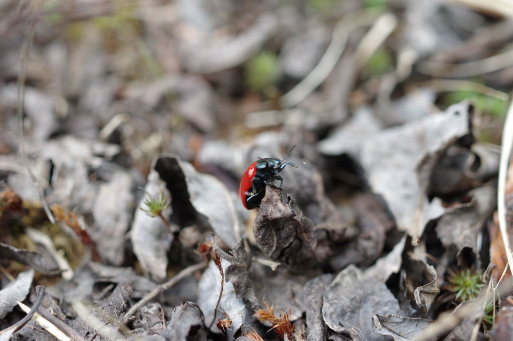 Idag är det inte roligt att vara ute. Iskalla vindar gör utevistelse mest till en plåga och att plåga sig i onödan är inte riktigt mitt sätt. Ute på en promenad med hundarna så såg jag något litet rött på marken. Givetvis tittade jag efter vad det var för något och det visade sig vara några nyckelpigor som vaknat till liv.